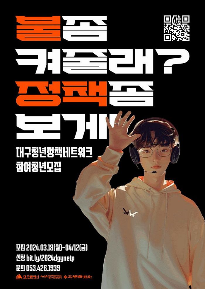 2024년 제6기를 맞는 대구청정넷은 청년들이 필요한 정책을 직접 만들어 보자는 취지로 청년들 사이에서 유행하는 e-스포츠 선수 페이커(본명 이상혁)*의 광고 대사를 패러디한 ‘불 좀 켜줄래? 정책 좀 보게!’를 슬로건으로 해 참여자를 모집한다.