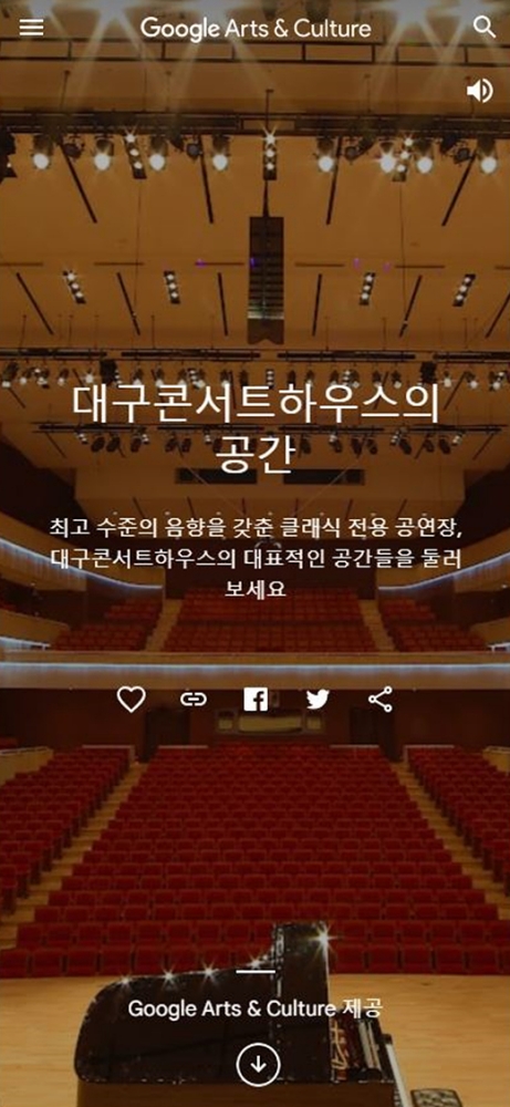 대구콘서트하우스는 구글 아트 앤 컬처와 파트너십을 체결하고, 구글의 온라인 비대면 전시 방식을 활용해 전 세계 어디에서나 내 손안에서 내 눈앞의 실존하고 있는 듯 공연장을 실감 나게 감상할 수 있는 서비스를 국내 클래식 공연장 최초로 시작한다.