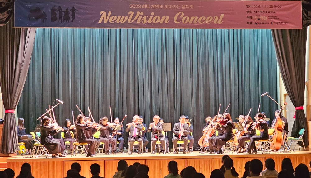 대구파동초등학교는 2023년 4월 21일(금) 10시, 3~6학년 180여명을 대상으로 장애인에 대한 올바른 인식 확립과 문화예술 감수성 함양을 위해‘하트 시각장애인 체임버 오케스트라 뉴비전 콘서트’를 개최했다.