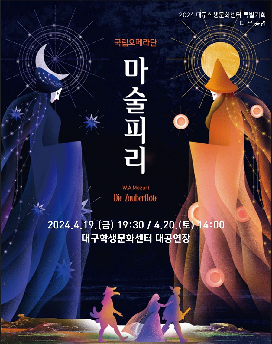 대구학생문화센터는 2024 특별기획으로 대한민국을 대표하는 국립오페라단 최정상급 주역들의 <마술피리>를 오는 4월 19일 ~ 20일 대공연장에서 선보인다.