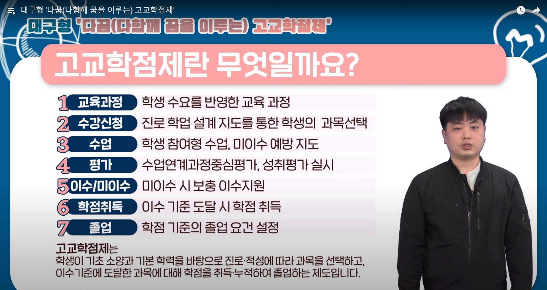 대구시교육청은 초ㆍ중ㆍ고 학생 및 학부모를 대상으로 한 대구형 ‘다꿈(다함께 꿈을 이루는) 고교학점제’ 정책 홍보 영상을 제작ㆍ배포했다고 18일 밝혔다.