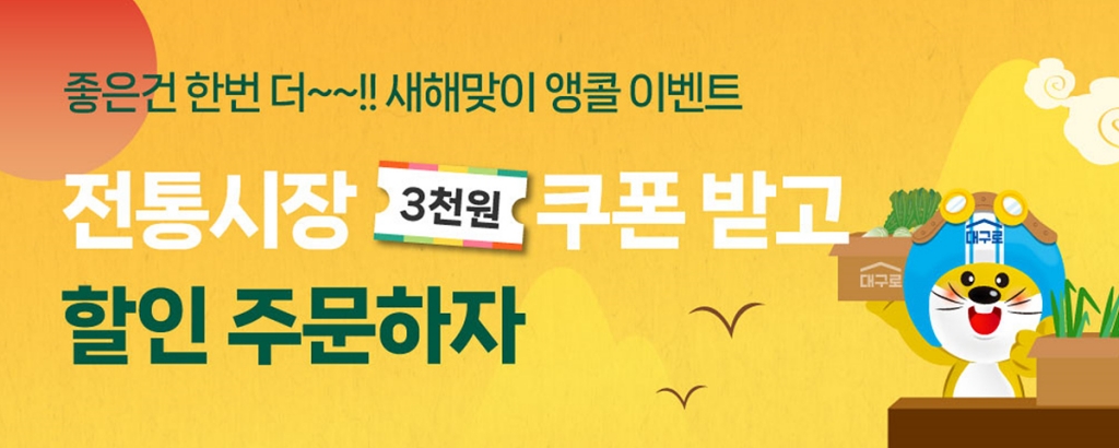 또한 ‘대구로’에서 ‘전통시장’ 주문 시 3,000원 할인 혜택도 볼 수 있다. 올해 1월 현재, ‘대구로’에는 12개*시장, 200여 개 점포가 입점해 다양한 상품들을 선보이고 있어, 시민들은 직접 시장에 가지 않고도 ‘대구로’를 통해 온라인으로 주문 및 배송이 가능하다.