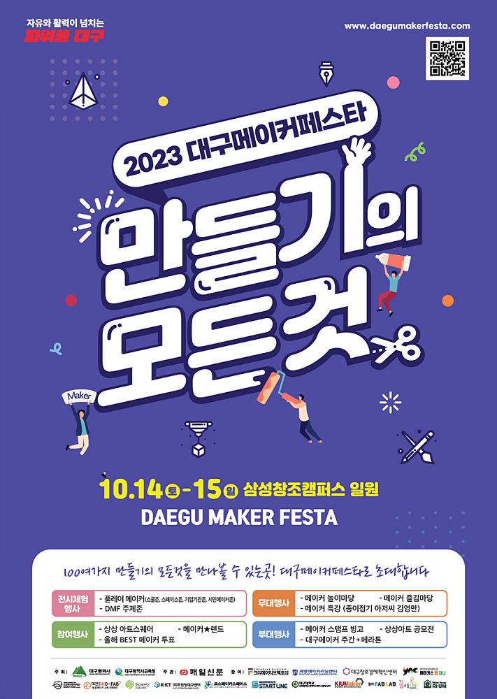 대구광역시와 대구시교육청이 공동 주최하는 「2023 대구 메이커 페스타」가 10월 14일(토)부터 10월 15일(일)까지 양일간 대구삼성창조캠퍼스에서 개최된다.