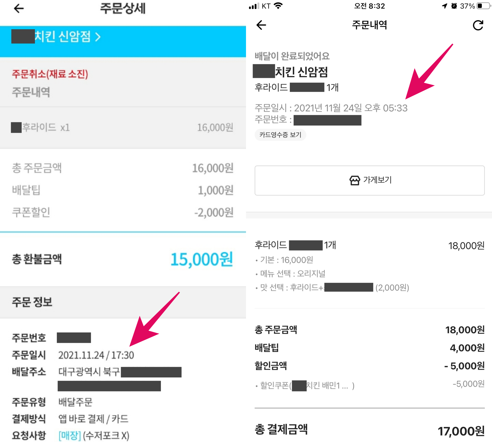 필자가 확인해본 결과, 동일한 업체임에도 '대구로'를 사용해 주문을 했을 경우에는 '재료 소진'으로 주문이 취소됐지만 바로 다른 민간배달앱(배달의 민족)을 사용했을 때는 정상적으로 주문이 이뤄지는 것을 볼 수 있었다.