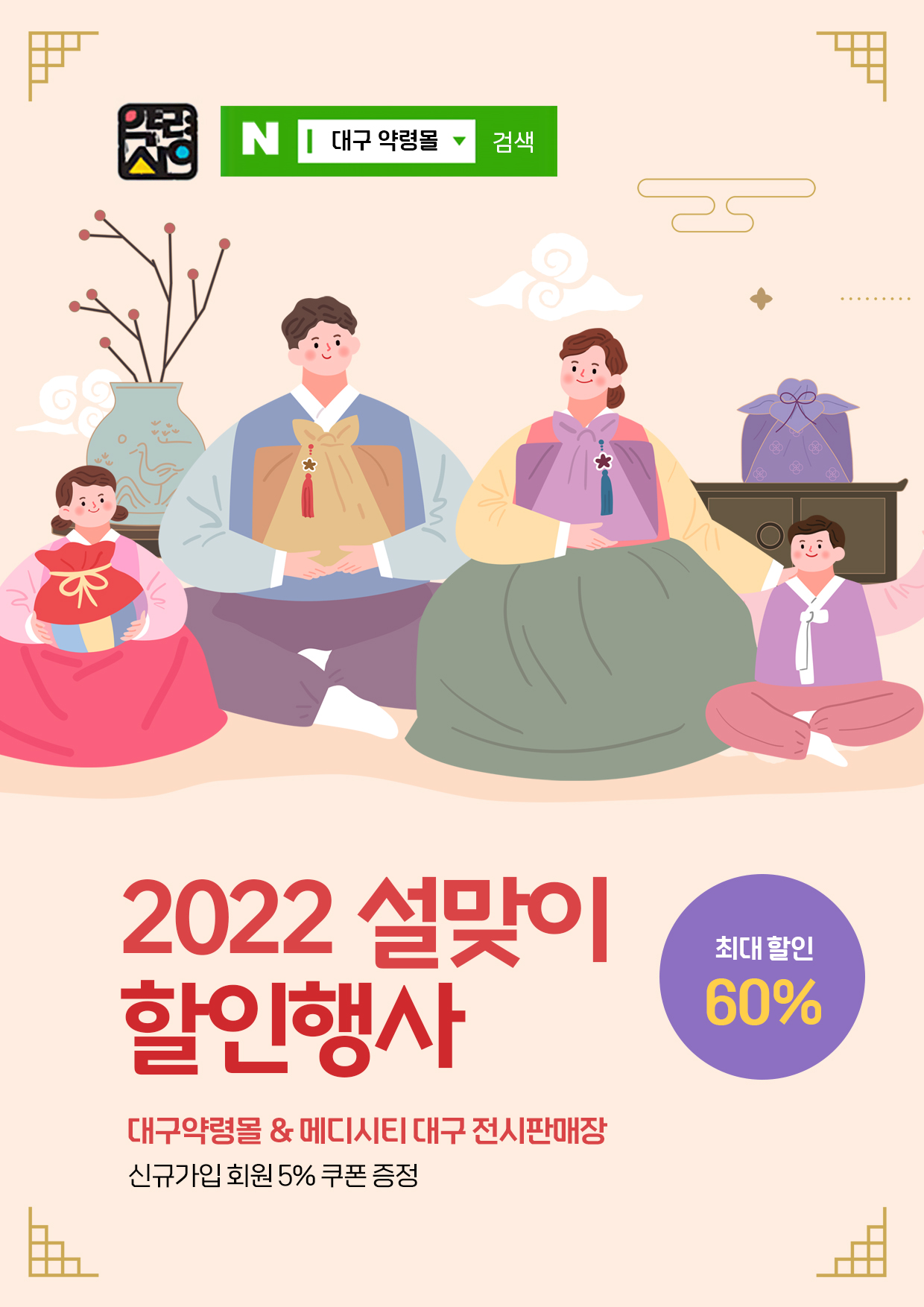 대구약령시 한방제품 특화몰인 ‘대구 약령몰’(이하 약령몰)과 ‘메디시티대구 명품브랜드 판매장(이하 메디시티대구 판매장)’에서 1월 19일부터 2월 6일까지 설맞이 할인행사를 진행한다.