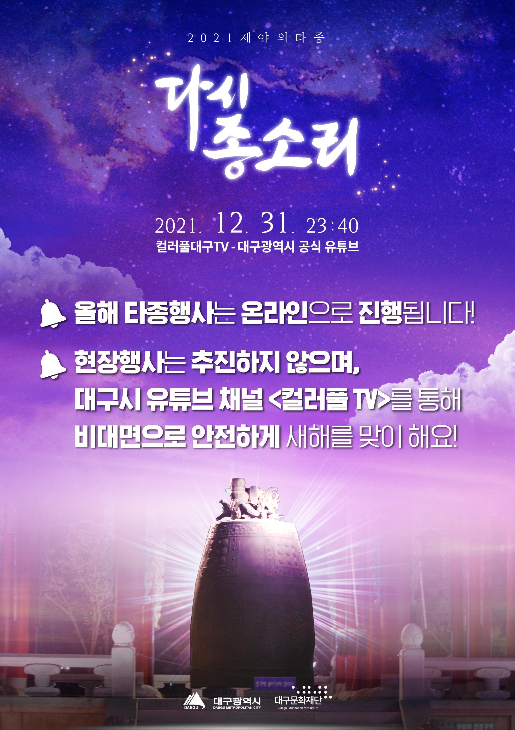 대구시는 안전한 타종행사를 위한 중앙방역대책본부, 중구청 등 관련기관과의 지속적으로 협의를 거쳐, 2021년 제야의 타종행사를 무관객으로 문화공연, 불꽃축제 등 일체의 문화행사 없이 비대면 온라인 형태로 개최한다.