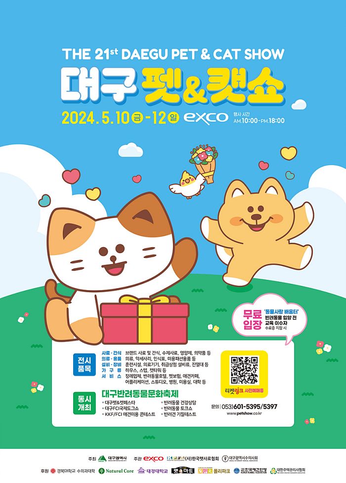 대구광역시가 주최하고 엑스코, 대구광역시수의사회, 한국펫사료협회가 주관하는 ‘제21회 대구 펫&캣쇼’가 오는 5월 10일(금)부터 12일(일)까지 3일간 엑스코 동관 전시장에서 열린다.