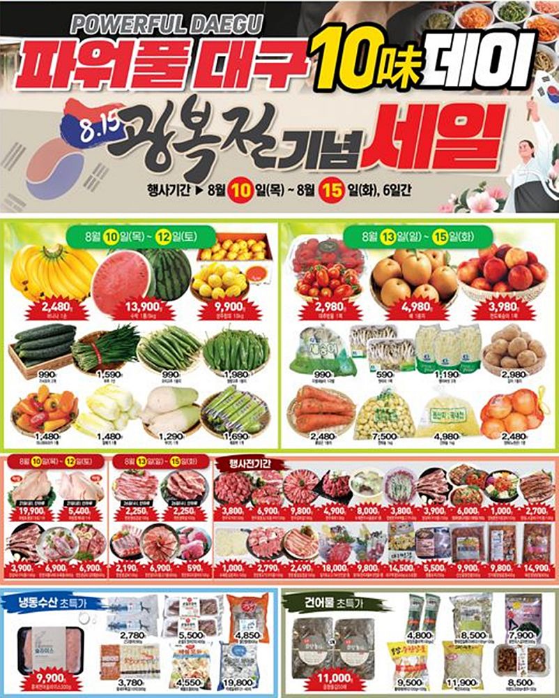 | ○ 주요 할인 품목 - 계란, 과일, 닭, 고기류, 식용유, 라면, 조미류 등 ☞ 문의 : 053-961-6100, 010-6772-9009(대구마트유통협동조합) |