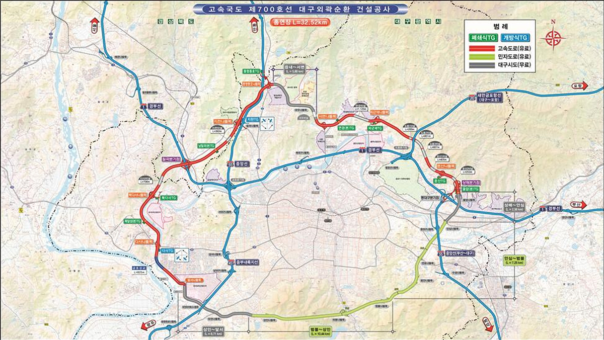 대구 도심의 교통혼잡 개선과 대구․경북지역 간 접근성 강화로 산업, 물류, 문화․관광 분야 등 대구의 미래 발전을 뒷받침할 4차순환선이 3월 말에 완전 개통을 앞두고 있다.