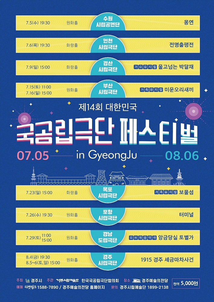 ‘제14회 대한민국 국공립극단 페스티벌’이 다음달 5일 경주예술의전당에서 수원시립공연단의 공연을 개막작으로 8월 6일까지 개최된다.