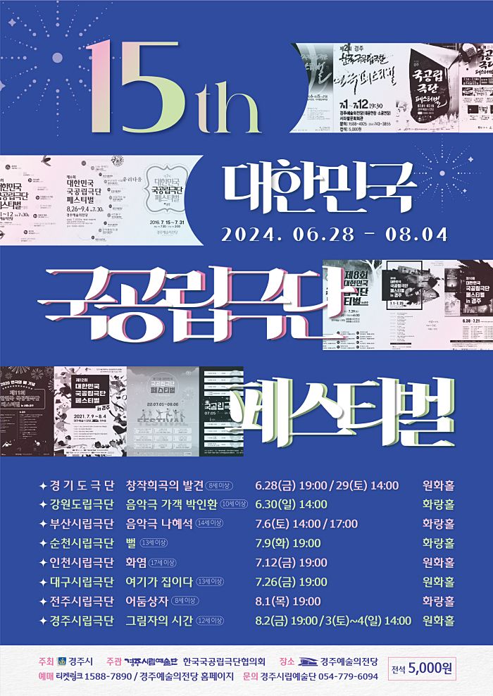 경주시가 주최하고 경주시립예술단과 한국국공립극단협의회가 주관하는 제15회 대한민국 국공립극단 페스티벌이 오는 28일부터 8월 4일까지 경주예술의전당에서 막을 올린다.