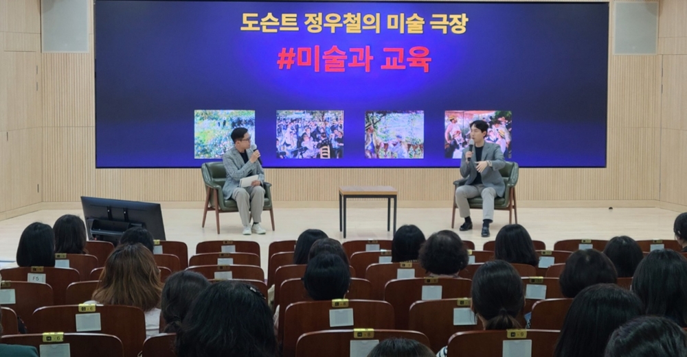 이번 연수는 ‘EBS 클래스e’에 출연하고, ‘샤갈 특별전’ 등 유명 전시회의 전시 해설가로 참여하며, ‘미술관 읽는 시간’을 비롯한 다양한 책을 집필해 미술계에서 전시 해설가로 활발하게 활동하고 있는 도슨트 정우철을 강사로 초청해 예술교육을 주제로 한 ‘도슨트 정우철의 미술 극장’으로 운영되었다.