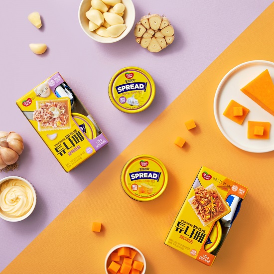 동원F&B가 간편하게 발라먹는 영양간식 ‘동원참치 스프레드’ 신제품 2종(체다치즈, 갈릭마요)과 ‘동원참치 튜나페’ 2종을 출시했다고 24일 밝혔다.