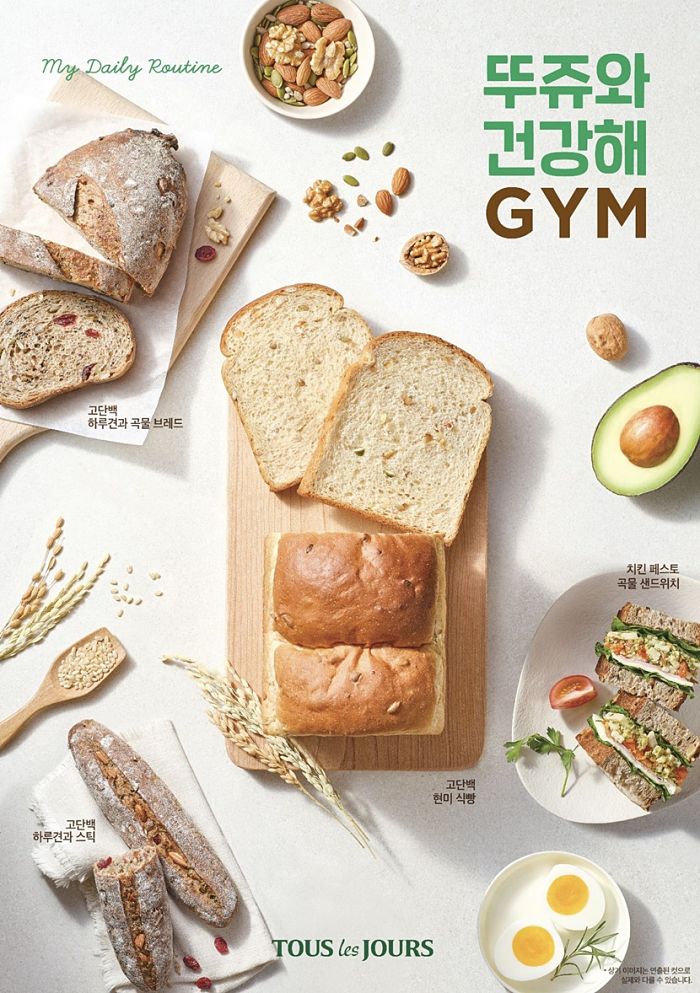 뚜레쥬르는 최근 확산된 헬시 플레저 트렌드로 즐겁게 건강 관리하고자 하는 소비자들의 니즈를 충족시킬 수 있도록 ‘My Daily Routine, 뚜쥬와 건강해GYM’의 콘셉트로 건강하면서도 맛있는 고단백 제품들을 선보인다.