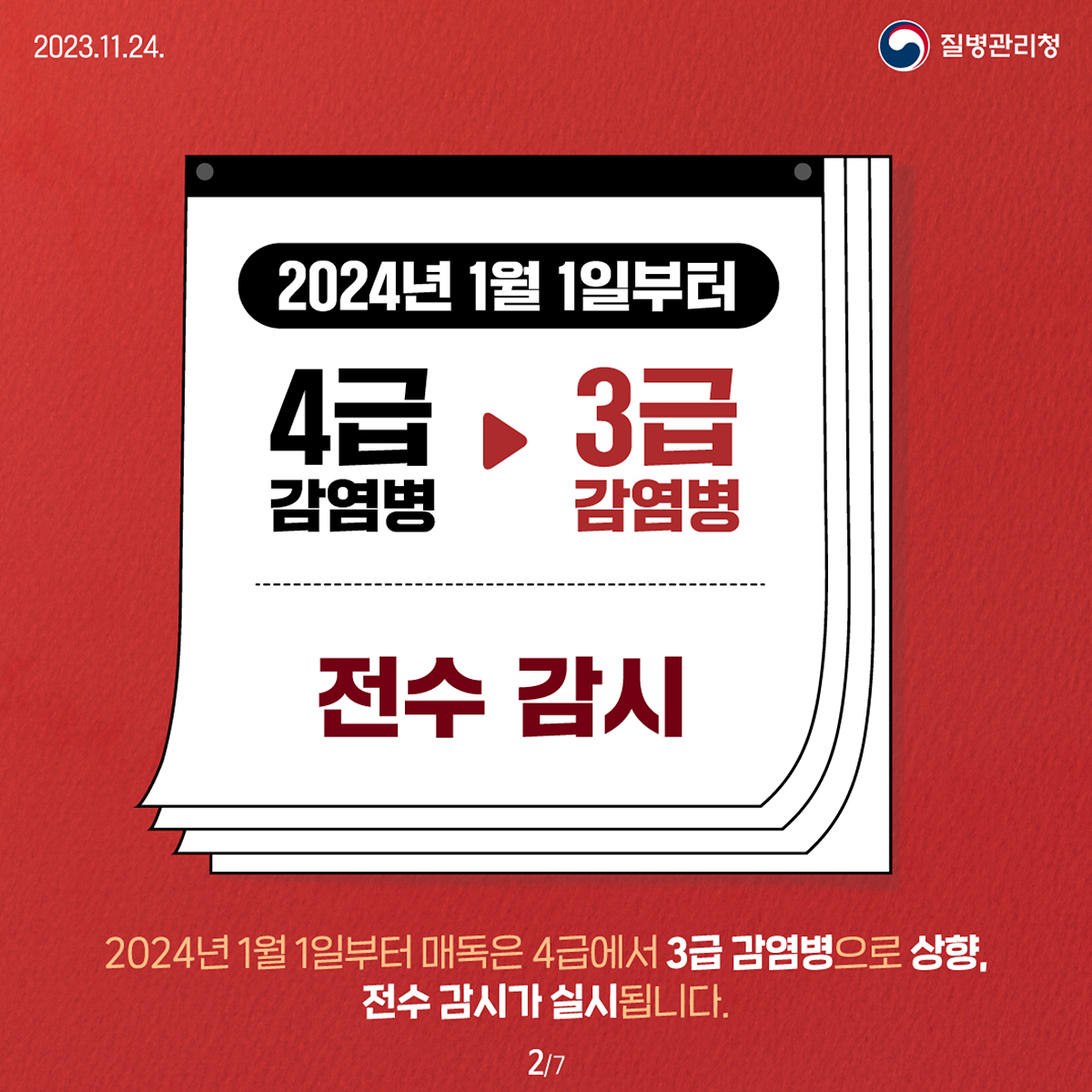 대구광역시는 그간 표본감시로 관리하던 매독 감염병을 전수감시 체계로 전환한다. 이는 매독이 세계적인 발생 증가 추세를 보이고 있으며, 매독 조기 발견 및 치료의 중요성이 대두됨에 따라 질병관리청이 2024년 1월 1일부터 제4급 감염병 매독을 제3급 감염병으로 등급 상향 조정함에 따른 것이다.