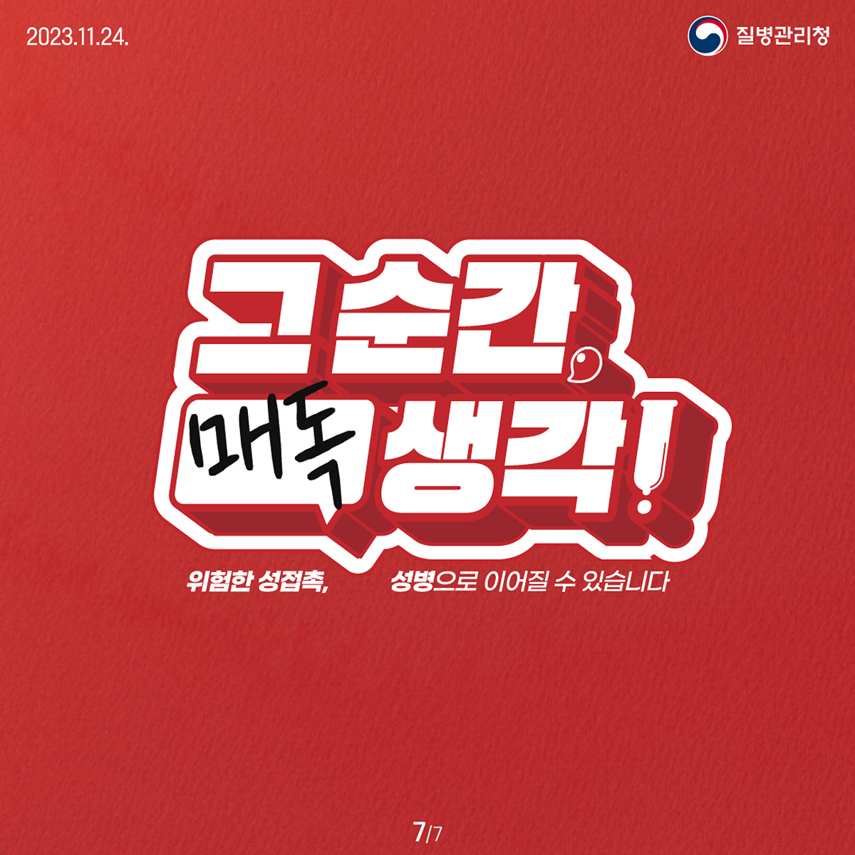 매독이란 수직감염, 혈액을 통한 감염, 성접촉을 통한 매독균 감염에 의해 발생하는 성매개감염병으로, 장기간 전파가 가능하며 적시에 치료하지 않을 경우 중증 합병증으로 진행할 가능성이 있다. 이러한 매독의 확실한 예방법은 위험한 성접촉*을 하지 않는 것이다.