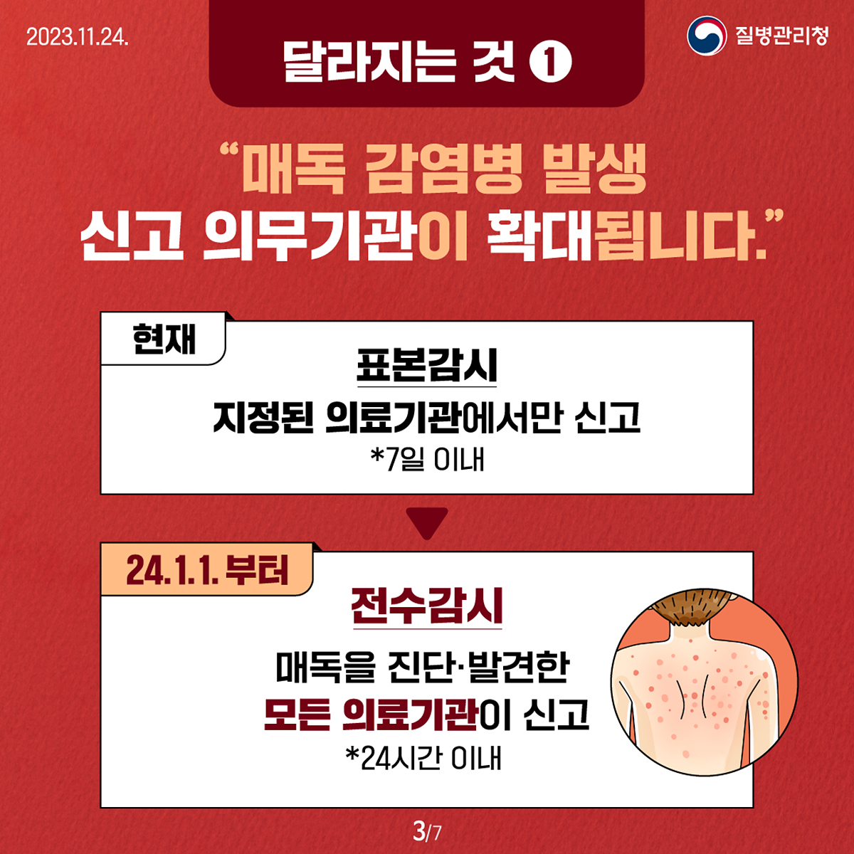 이번 조치로 인해 주요하게 달라지는 점은 지정된 의료기관에서만 신고하던 표본감시에서 매독을 진단·발견한 모든 의료기관이 24시간 내 신고하는 전수감시로 전환된다는 것이다.