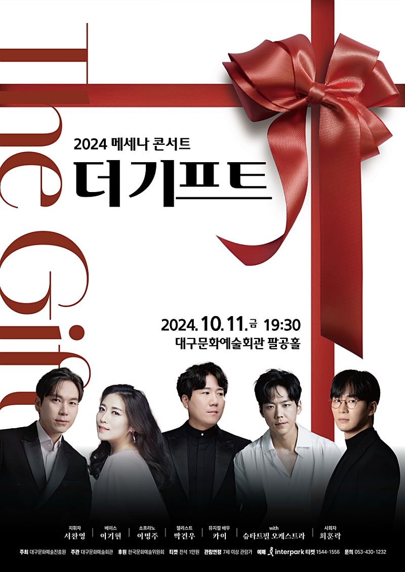 대구문화예술진흥원(이하 ‘문예진흥원’)은 2024 메세나 콘서트 ‘더 기프트’ 티켓 오픈을 오는 9월 2일(월) 오후 2시에 진행한다. 공연은 10월 11일(금) 오후 7시 30분, 대구문화예술회관 팔공홀에서 열린다.