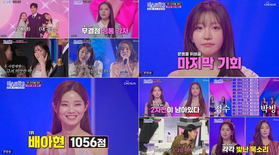 TV조선 ‘미스트롯3’ 배아현이 TOP10 결정전에서 먼저 웃었다. 지난 15일 방송된 TV조선 ‘미스트롯3’ 9회는 전국 16.5%(닐슨코리아, 유료가구 기준), 최고 17.7%를 기록하며 9주 연속 지상파, 종편, 케이블 등 목요일 전체 프로그램 1위에 올랐다.