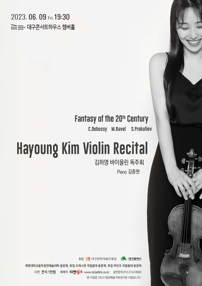 (재)대구문화예술진흥원(이하 진흥원) 6기 청년 예술가 바이올리니스트 김하영 독주회가 다가오는 6월 9일(금) 오후 7시 30분 대구콘서트하우스 챔버홀에서 개최된다.