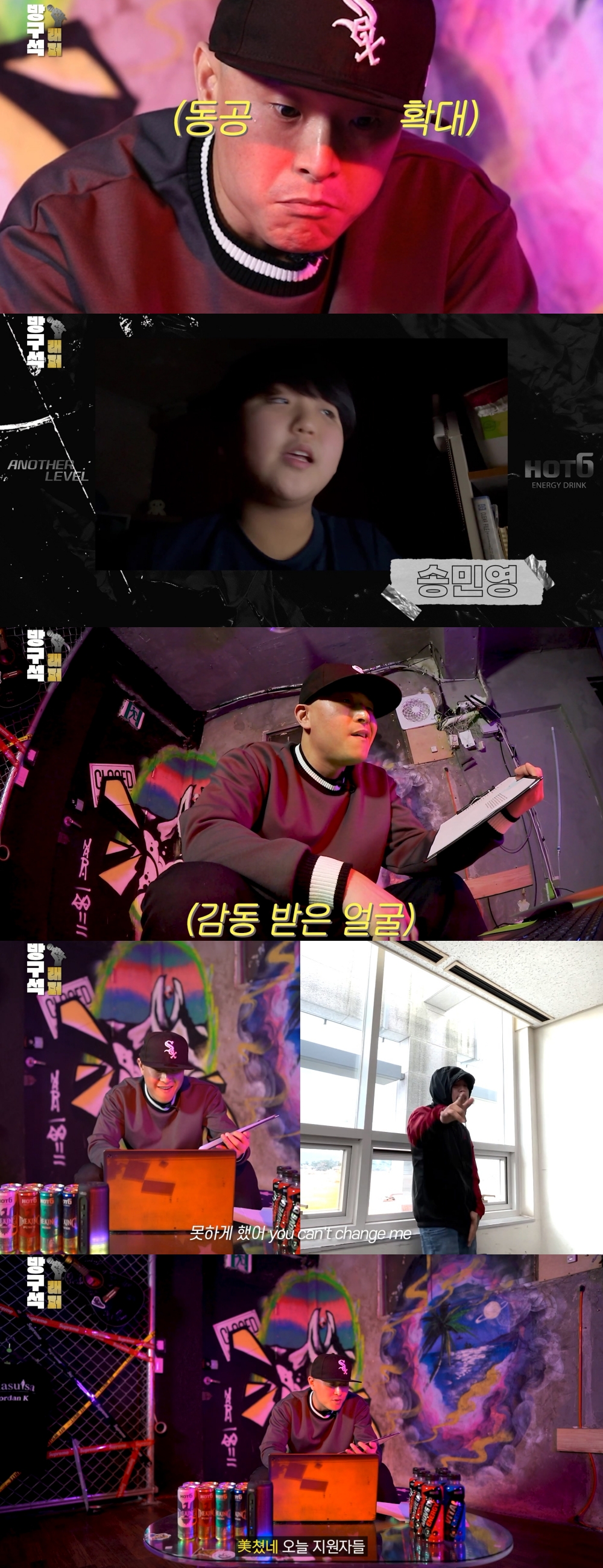 시작부터 원썬의 동공을 확장시킨 지원자는 송민영이다. 송민영은 올해 중학교에 입학하는 어린 래퍼로 지난해 ‘쇼미더머니10’에 출연해 화제가 된 바 있다. 원썬은 송민영의 지원영상을 감상하는 내내 아빠미소를 감추지 못하며 “‘쇼미’를 하는 동안에도 실력이 느는 게 보였던 친구다. 라미잉이 탄탄하고 정확해졌다”고 평가했다.