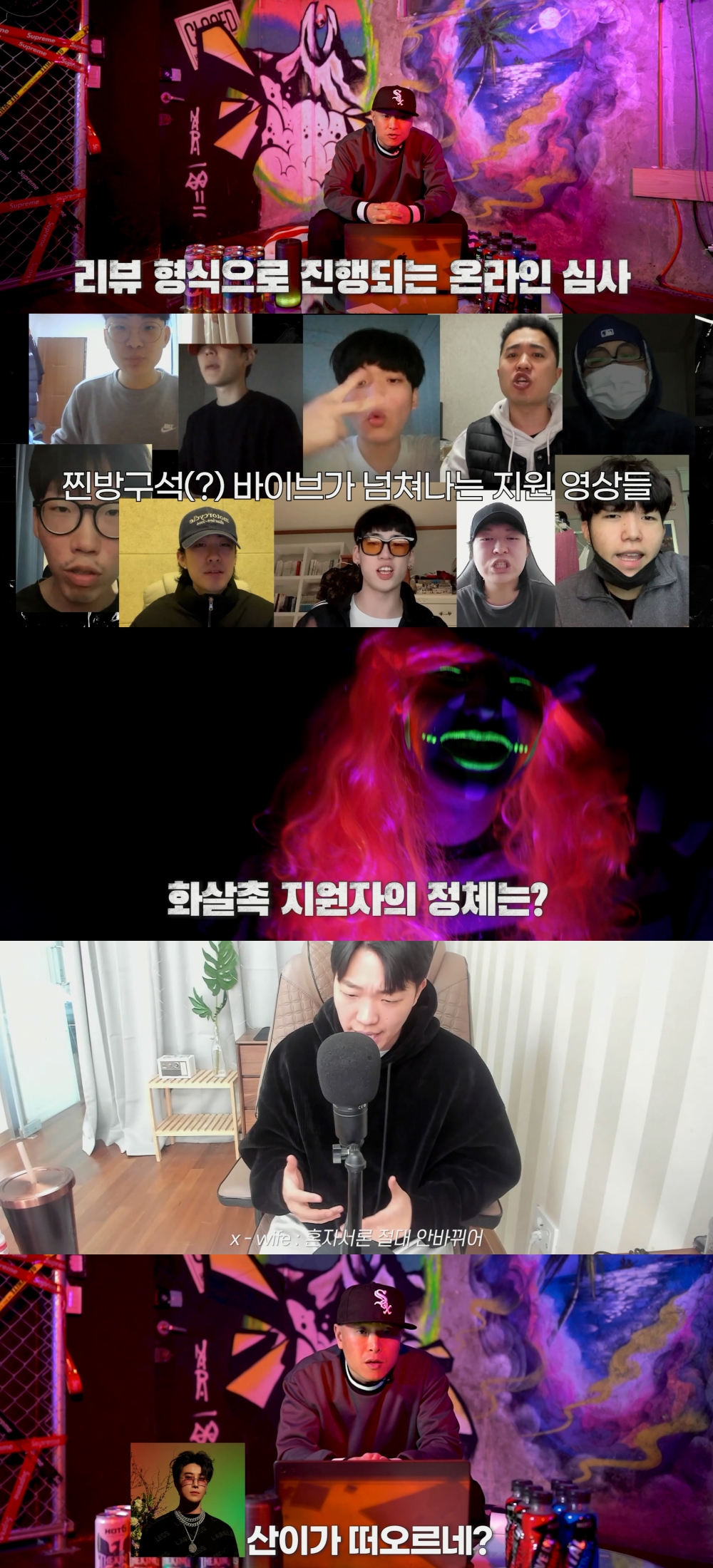 ‘방구석 래퍼’ 첫 회에서 MC 원썬의 눈길을 끈 건 넷플릭스 드라마 ‘지옥’의 화살촉 분장 영상과 함께 지원한 최고기였다. 최고기는 음악에 대한 애정과 열정으로 유명한 방송인이다. 2009년 첫 음원을 발표한 이후 꾸준히 음원과 공연을 통해 언더그라운드 래퍼 활동을 이어오고 있다. 최고기가 힙합 서바이벌 프로그램에 도전한 건 이번이 처음이다.
