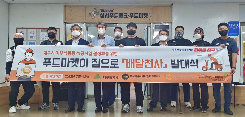 앞서 대구시는 푸드마켓 이용 대상자 중 원거리 거주자 및 거동이 불편한 노인, 장애인 등의 경우 이용을 포기하는 사례가 있어 이를 개선하기 위해 지난해 6월 전국배달라이더협회 대구지회, 광역기부식품등지원센터와 협약을 체결하고 달서구 지역에서 배달천사 시범사업을 실시했다.