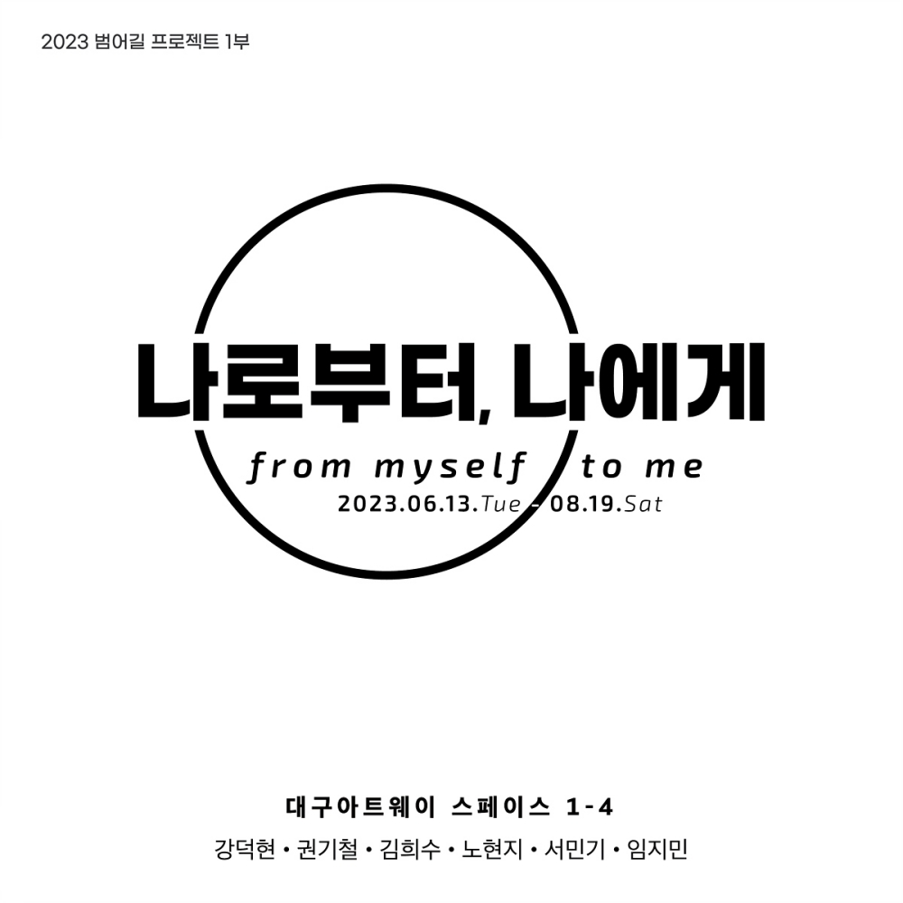 (재)대구문화예술진흥원(이하 ‘문예진흥원’)이 운영하는 대구아트웨이(구.아트랩범어)는 2023 범어길 프로젝트 1부 <나로부터, 나에게>를 6월 13일(화)부터 8월 19일(토)까지 스페이스 1~4에 개최한다.