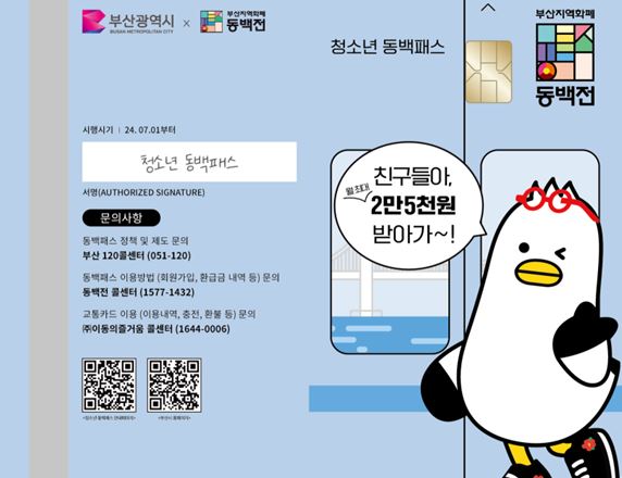부산시(시장 박형준)는 전국 최초로 시행 중인 대중교통 통합할인제 '동백패스' 이용 활성화와 혜택 확대를 위해 오는 7월부터 만 13세~18세를 대상으로 한 '청소년 동백패스'를 도입·시행한다고 밝혔다.