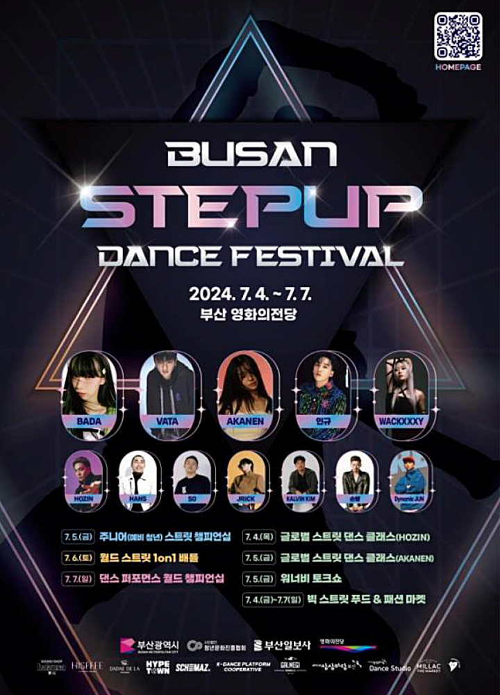 부산시는 (사)청년문화진흥협회와 오는 4일부터 7월 7일까지 4일간 영화의전당, 뮤지엄원, 서면 상상마당 등에서 「2024 부산 스텝업 댄스 페스티벌」을 개최한다고 밝혔다.