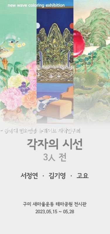 경북도는 5월 15일부터 28일까지 14일간 새마을운동 테마공원 전시관 1층 로비에서 「동국대 민화전공 뉴웨이브 채색연구회 - 각자의 시선 3인 전시회」를 개최한다고 밝혔다.