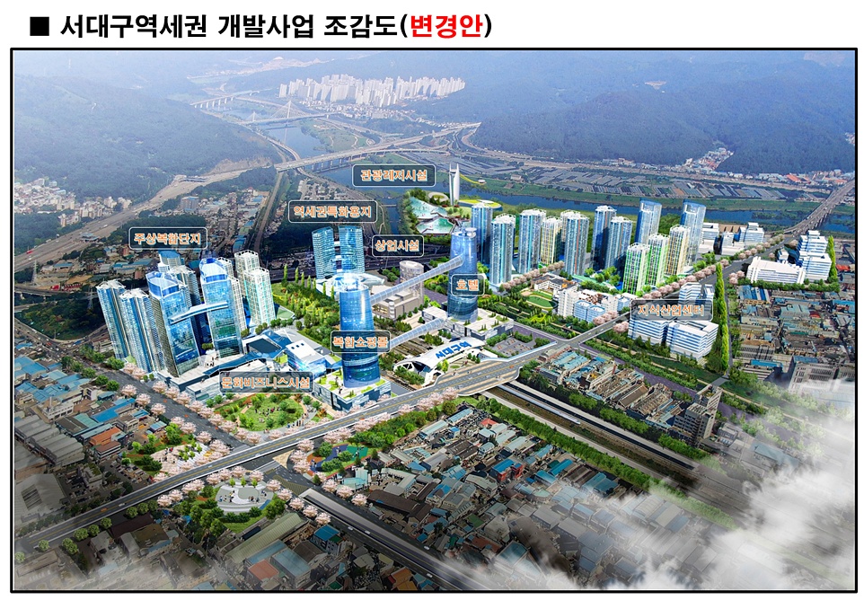 대구시는 서대구역세권 개발을 통해 과거 1970년대 생활쓰레기가 매립됐던 서대구역사 인근 지역을 교통거점형 친환경 문화관광 신도시로 개발하는 구상안을 공개했다.