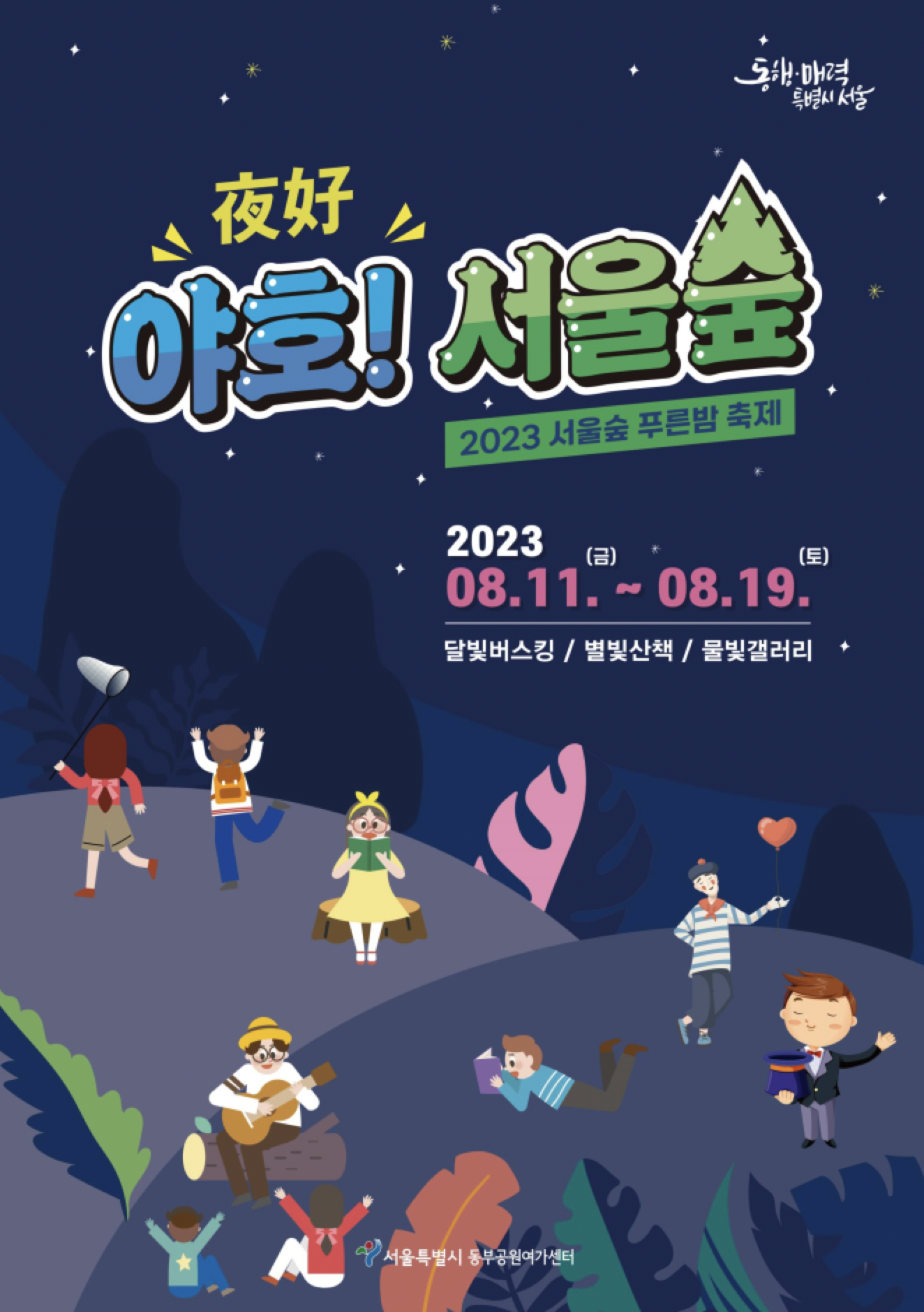서울시는 한낮의 더위를 피해 밤에 즐기는 새로운 감성의 서울숲 축제 ‘2023 서울숲 푸른밤 축제, 야호夜好! 서울숲’을 8월11일(금)부터 8월19일(토)까지 운영한다.