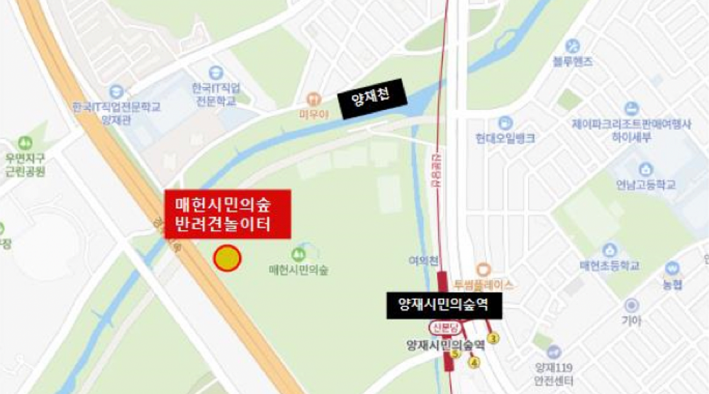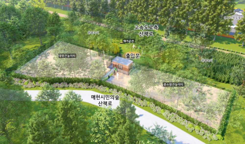 서울시는 서초구 매헌시민의숲에 총 843㎡ 규모의 반려견 놀이터를 조성하고 6월 11일 오후 14시 개장식을 갖는다고 밝혔다. 개장식은 서울시 정무부시장, 서초구청장, 동물보호 시민단체 대표, 반려견 동반 시민 등과 함께한다.