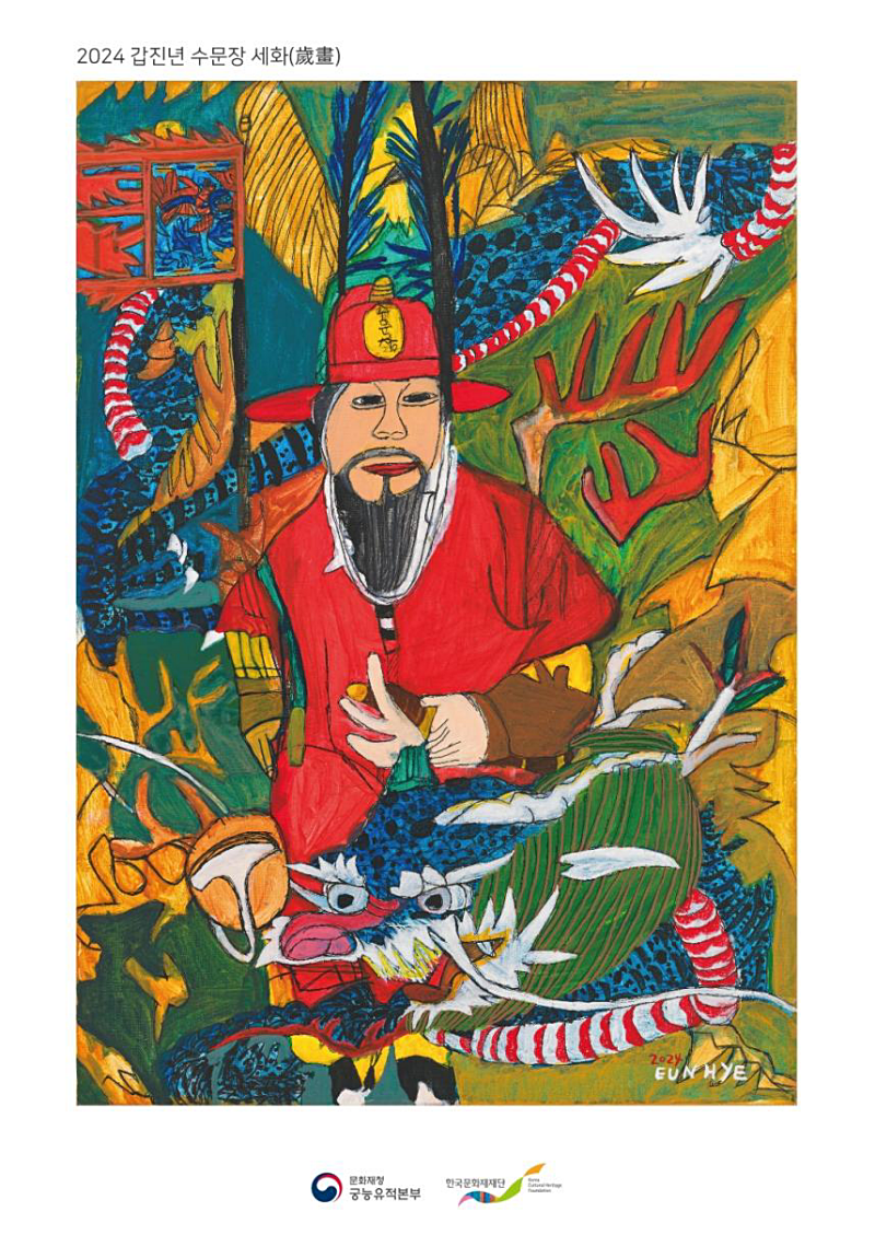 올해 세화는, 풍자화(캐리커처) 작가이자 2022년 tvN 드라마 ‘우리들의 블루스’에 출연하며 배우로도 활동하고 있는 정은혜 작가와 협업한 ‘청룡을 배경으로 서있는 수문장’ 그림으로 회당 선착순 배포되며, 한국문화재재단 누리집(www.chf.or.kr)에 접속하거나 행사 현장에서 정보 무늬(QR코드)를 통해 내려받을 수도 있다. 자세한 사항은 한국문화재재단 활용기획팀(☎02-3210-1645/1646)으로 문의하면 된다.