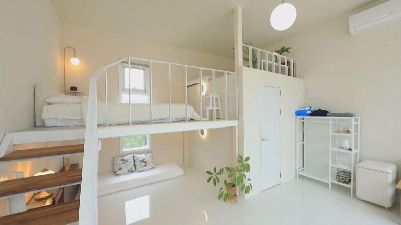 리모델링을 하다 보니 이 집이 가진 가치들이 눈에 보였다는 건축주. 단순히 나 혼자 지내는 것뿐만 아니라 예술과 접목시켜 보자는 욕심이 들었다. 그렇게 아트 프로젝트가 시작됐고, 염부의 집은 예술가들에게도 개방된 복합 공간 ‘스믜집’으로 재탄생했다. 두 칸은 건축주가 직접 리모델링한 숙소지만, 나머지는 신안을 찾는 전 세계 예술가들을 위해 6개월간 무료로 제공되는 공간이다.