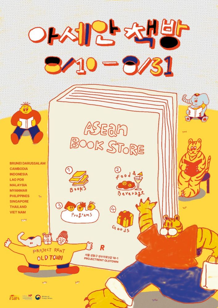 KF(Korea Foundation, 한국국제교류재단) 아세안문화원 (부산 해운대구 소재)이 오는 8월 10일(목)부터31일(목)까지 3주간 < 2023 아세안 책방 > 을 서울 프로젝트렌트 올드타운점(성동구 성수이로3길 18-1)에서 개최한다.