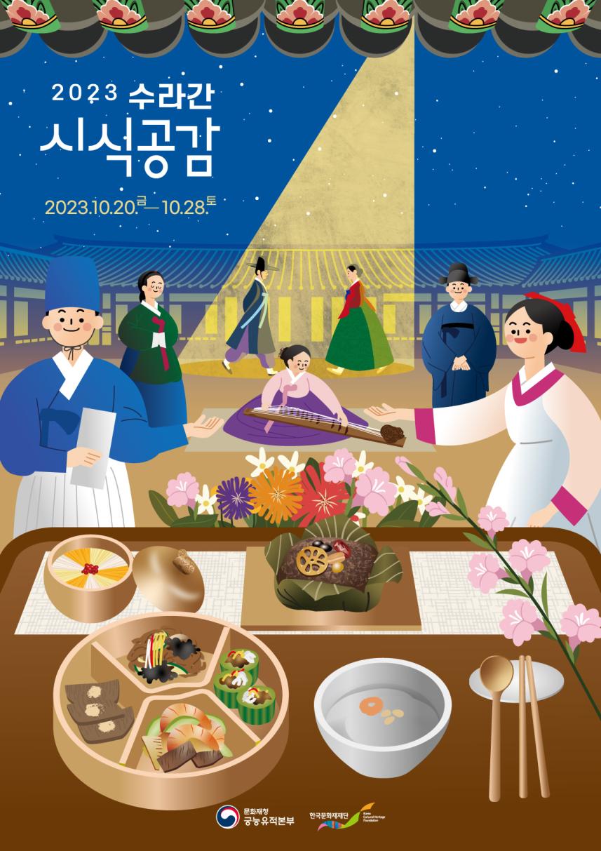 문화재청 궁능유적본부는 한국문화재재단과 10월 20일(금)부터 28일(토)까지 8일간 경복궁 소주방 권역에서 2023년 <수라간 시식공감> 하반기 행사를 개최한다.(경복궁 휴궁일인 화요일은 제외)