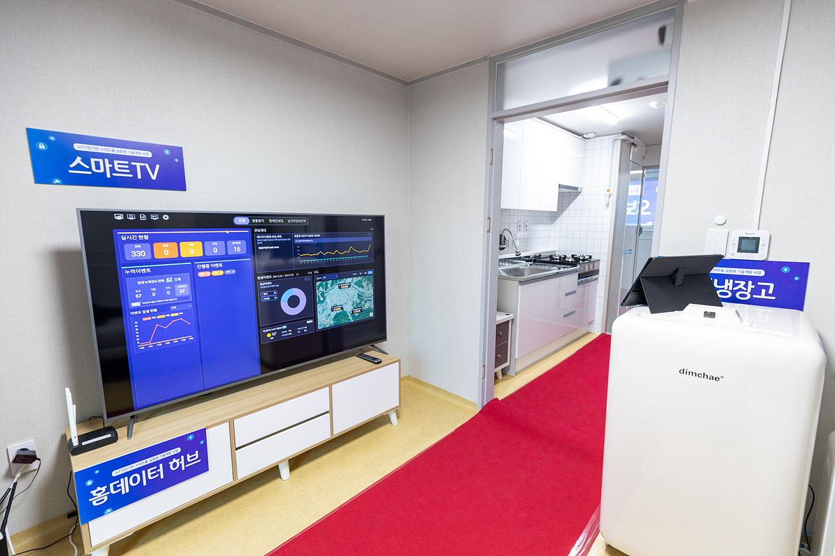 스마트홈은 센서가 부착된 생활가전(TV, 냉장고, 공기청정기), 도어센서, 온습도 센서, 모션센서, 홈캠 등이 설치돼 있으며, 상수도·가스·전기 원격검침기 등을 통해 거주자의 일상생활 데이터를 수집 및 분석해 이상징후가 감지되면 아파트 관리사무소로 연락이 가고 지역돌봄센터와 경찰서, 소방서와도 연계가 가능해 사고를 사전에 예방할 수 있다.
