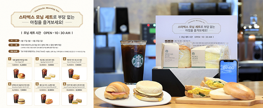 스타벅스 코리아가 오는 17일부터 30일까지 카페 아메리카노와 이벤트 대상 푸드를 동반 구매 시 할인된 가격에 제공하는 ‘모닝 세트’ 이벤트를 한시적으로 진행한다.