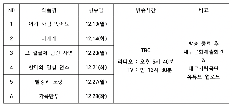 대구시립극단은 TBC와 함께 스탠딩 드라마 '더 플레이' 시즌2를 제작, 방송과 더불어 오디오북과 희곡집도 발간한다.