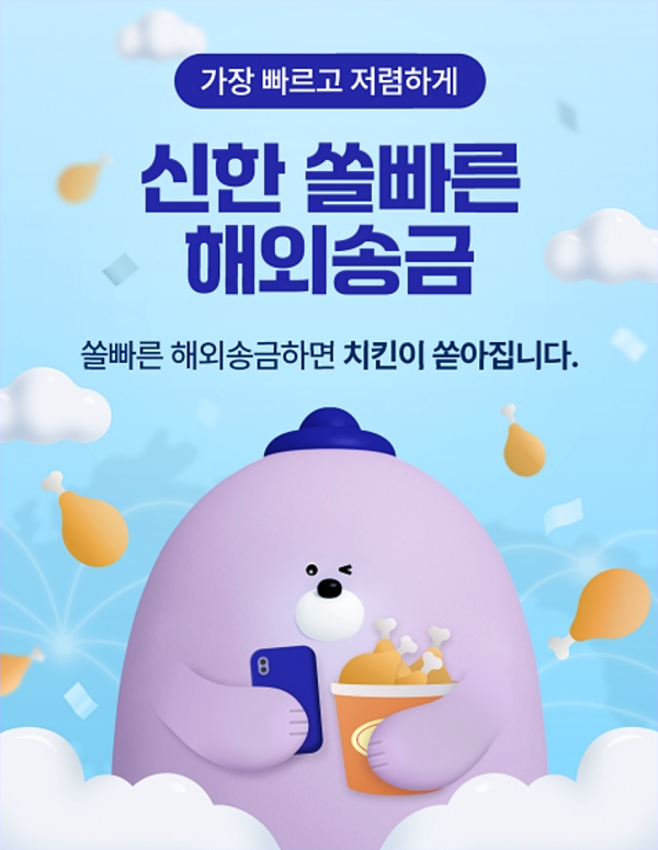 신한은행은 서비스 출시 기념 이벤트를 5월 22일까지 진행한다. '쏠빠른 해외송금'을 이용해 10달러 이상 송금한 선착순 고객 1,000명에게 마이신한포인트 2,024포인트를 지급하고 110•24•1002401000 2024번째 송금 고객에게는 bhc치킨 콤보 세트를 증정한다.