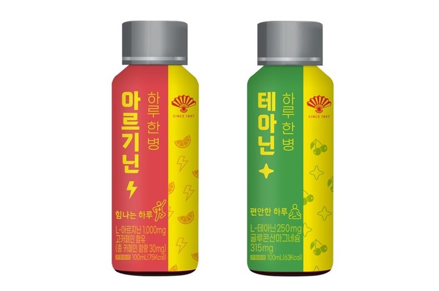 ‘하루 한 병 아르기닌’에는 활력 증진을 위한 L-아르지닌 1,000mg와 함께 비타민B군 3종(B1, B2, B6)과 비타민 C도 1일 권장량의 200%가 담겨있다. ‘하루 한 병 테아닌’에는 스트레스로 인한 긴장 완화에 도움을 줄 수 있는 것으로 알려진 L-테아닌 250mg과 흡수율이 높은 액상 형태의 글루콘산 마그네슘 315mg 등이 들어있다.
