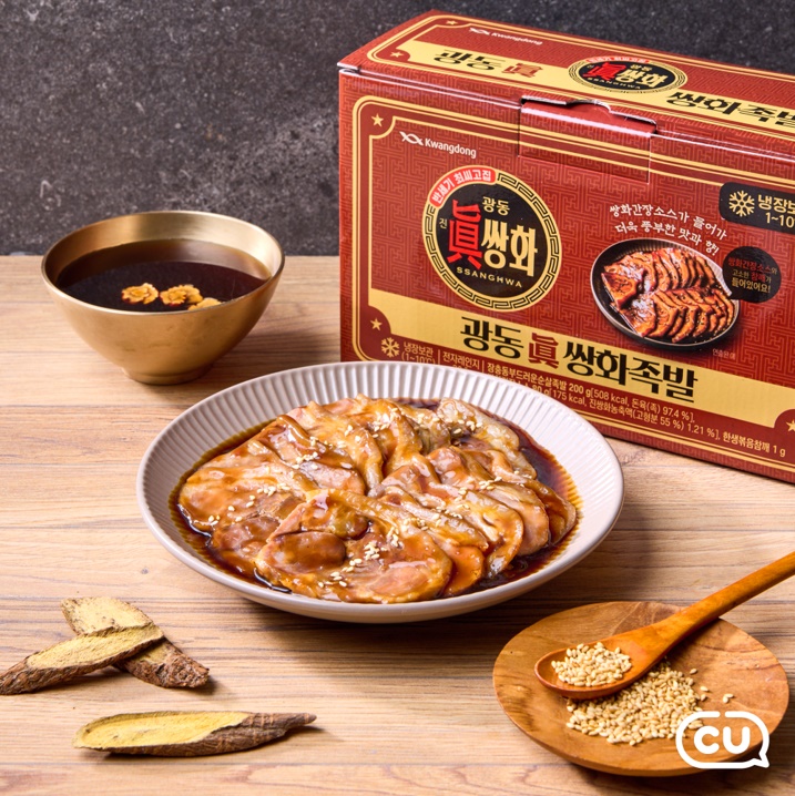 편의점 업계 1위 CU가 광동제약의 진쌍화 음료를 활용한 이색 기획 안주 ‘광동 진쌍화 족발(9,500원)’을 선보인다.