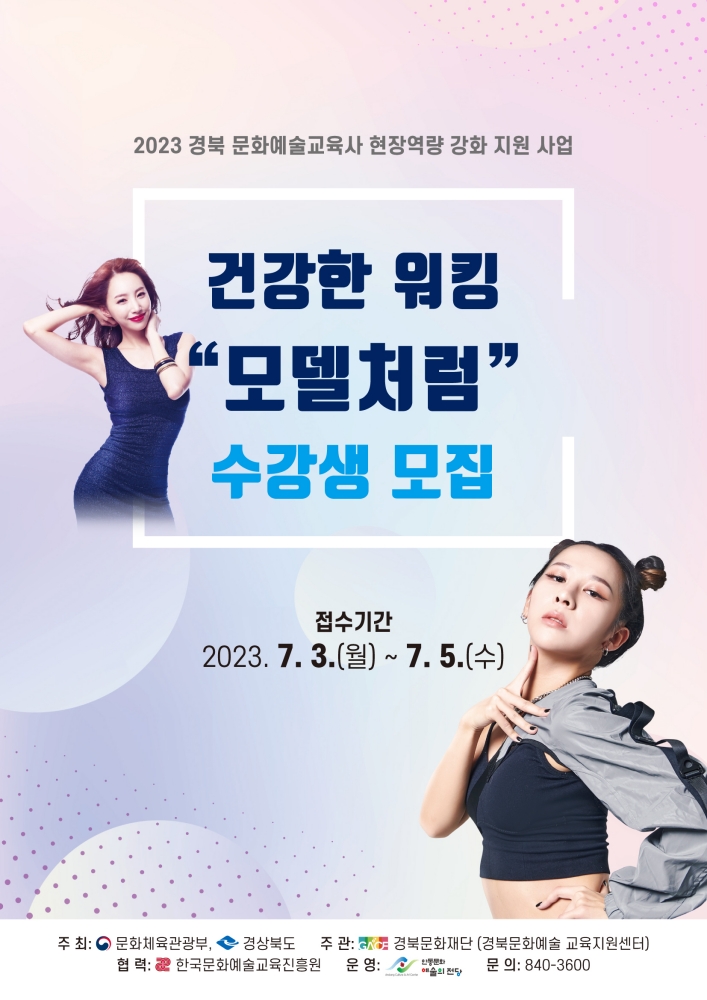 안동문화예술의전당이 경북문화재단이 주최하는 2023 문화예술교육사 역량강화 지원사업에 선정되어 『건강한 워킹 ‘모델처럼’』사업을 진행한다.