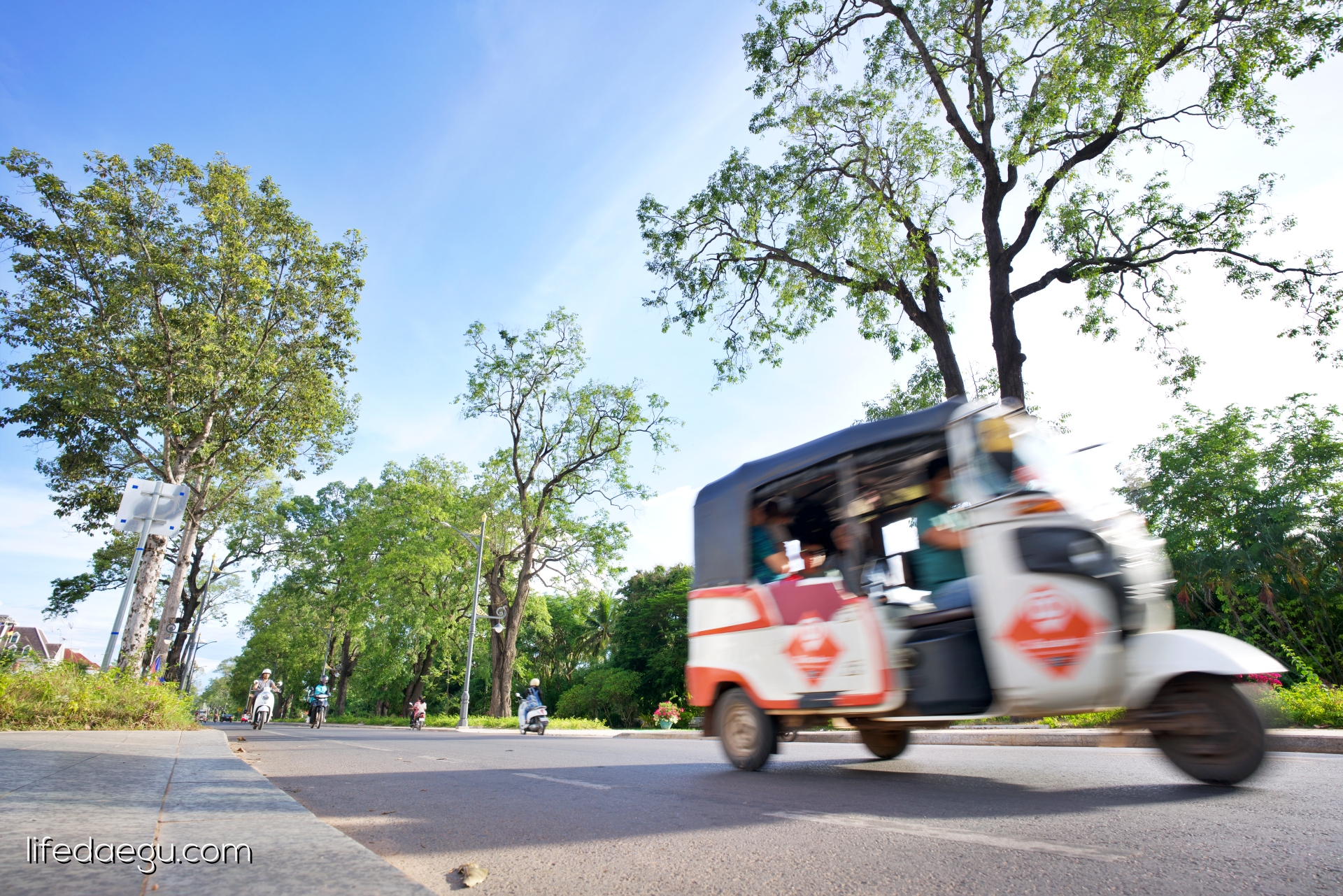 시엠립은 숲의 도시다. 잘 정비된 도로를 따라 가로수가 빽빽하게 심어져 있다. 초록빛 가로수는 동남아 특유의 파란 하늘과 함께 작은 도시에 청량함을 더해준다.
