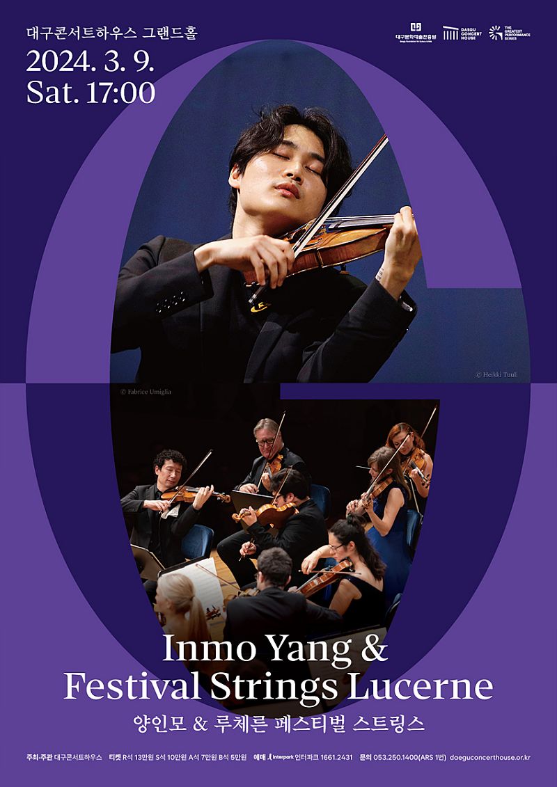 박창근 대구콘서트하우스 관장은 “대구콘서트하우스의 대표 기획공연인 명연주시리즈가 역대급 라인업으로 찾아왔다. 섬세한 연주로 현악기가 낼 수 있는 최상의 아름다움을 표현하는 양인모와 루체른 페스티벌 스트링스의 공연으로 명연주시리즈를 시작한다는 사실에 기쁘다. 세계적으로 인정받고 있는 연주자들이 공연을 보시며 한 해를 힘차게 시작하시길 바란다”고 전했다.