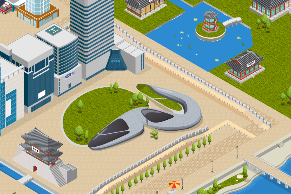 ‘마을 공간’에는 동대문디자인플라자(DDP), 서울역, 한강공원, 광장시장 등 한국의 대표적인 명소도 있어 외국인들의 한국 방문에 대한 의욕도 높일 수 있을 것으로 기대된다. 또한 각 공간은 현지 세종학당에서 실제로 활용하고 있는 기본교재인 ‘세종한국어 회화(세종학당재단발간)’의 학습 과정과 긴밀하게 연계해 구성한 만큼 학습자들은 다양한 대화공간에서 몰입감 있게 말하기 연습을 할 수 있다.