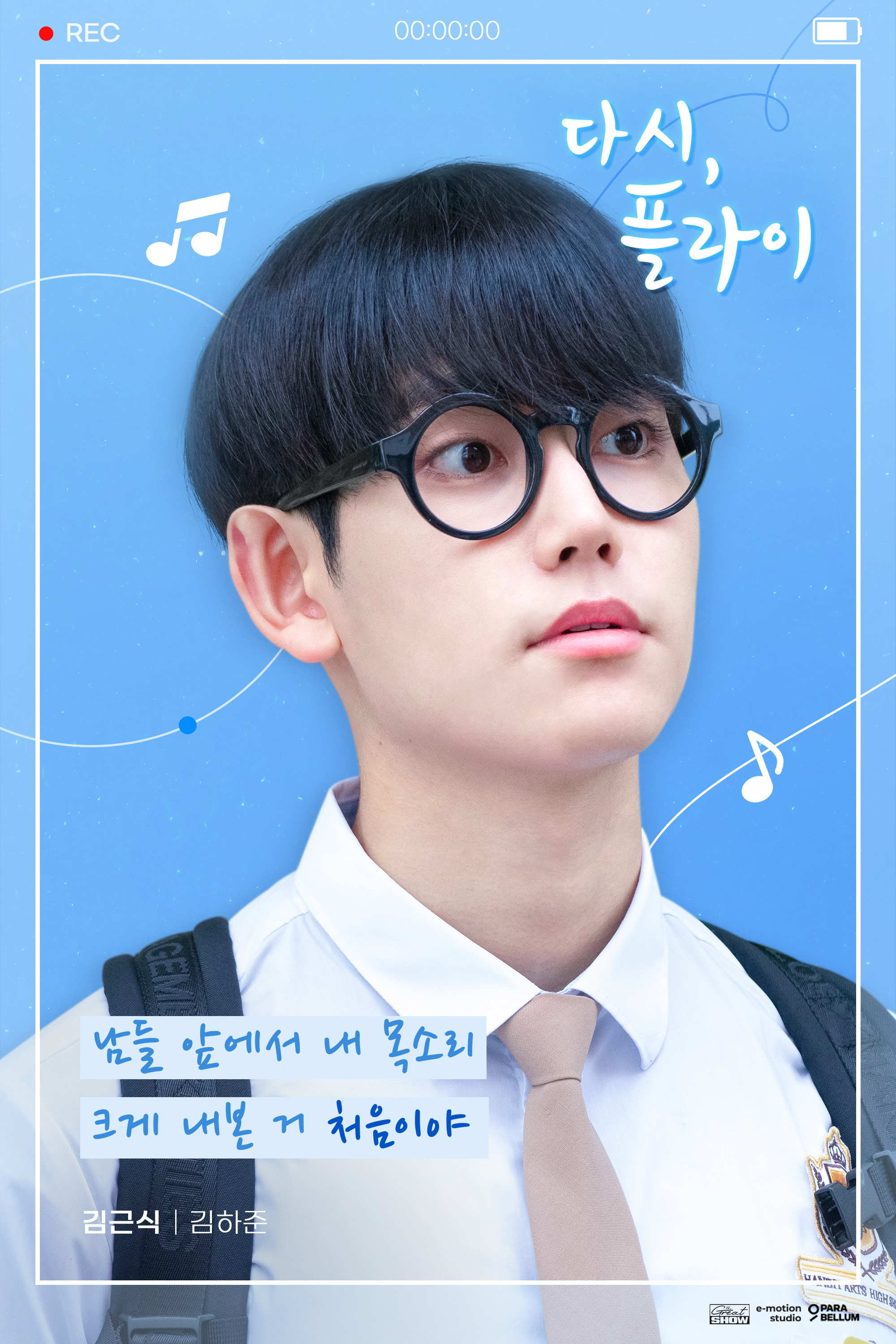 김하준은 '다시, 플라이'에서 메인보컬 김근식 역을 맡아 목소리도 작고 소심하지만, 노래를 시작하면 모두를 깜짝 놀라게 하는 실력을 갖춘 캐릭터로 특히 무대 위에서 안경을 벗으면 눈부신 외모가 드러나는 '얼굴천재'를 담당해 드라마에 재미를 더 할 예정이다. 지난 1화에서 김하준이 연기한 김근식은 '한빛예고 폴포츠'로 소개되며 앞으로 극 중에서 어떤 모습을 선보일지 호기심을 자아냈다.