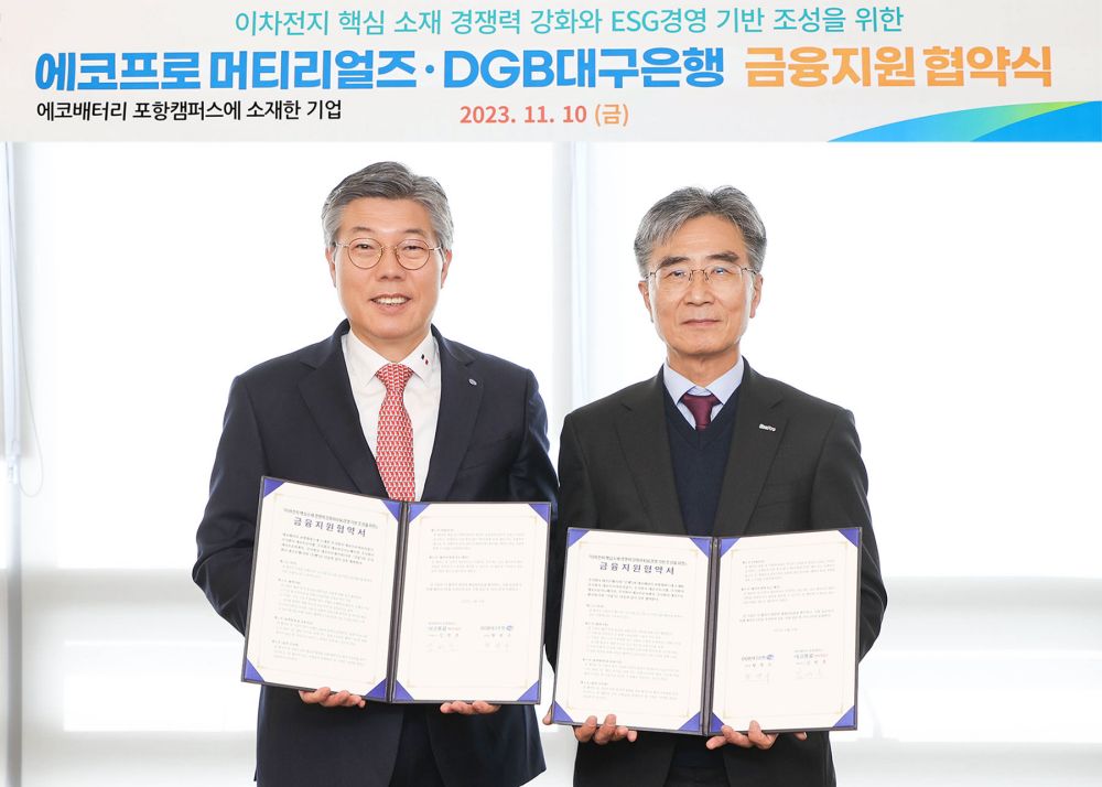 지방벤처에서 출발, 세계적인 배터리 소재 기업으로 성장한 에코프로와 지역 경제 금융 파이프 라인을 맡고 있는 DGB 대구은행이 공동으로 협약을 체결해 상호 윈윈하는 협력체제를 구축했다는 점에서 주목을 끌고 있다.